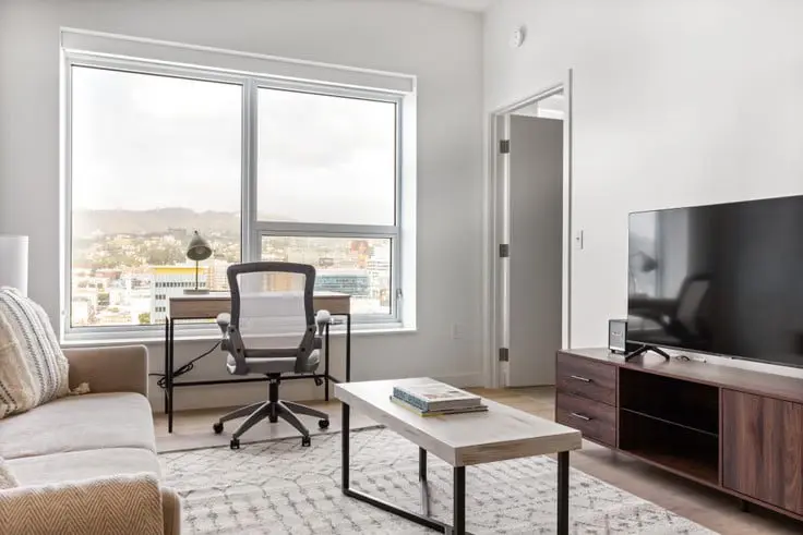 As with any Digital Nomad Suites apartment, you’ll find a thoughtfully designed space complete with beautiful furniture and a fully-equipped kitchen in this one-bedroom property. And, thanks to our superior quality mattresses, luxury linens, and towels, you can relax knowing you’ll always feel comfortably at home. When you’re ready for some fun, you can take in the Los Angeles vibes or bring the entertainment to you with the premium wireless speaker or smart TV. This apartment also offers in-apartment laundry.