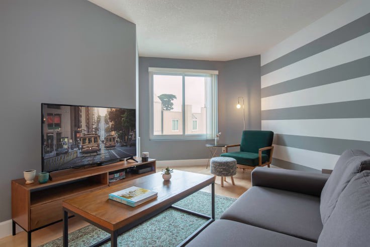 As with any Digital Nomad Suites apartment, you’ll find a thoughtfully designed space complete with beautiful furniture and a fully-equipped kitchen in this one-bedroom property. And, thanks to our superior quality mattresses, luxury linens, and towels, you can relax knowing you’ll always feel comfortably at home. When you’re ready for some fun, you can take in the San Francisco vibes or bring the entertainment to you with the premium wireless speaker or smart TV.