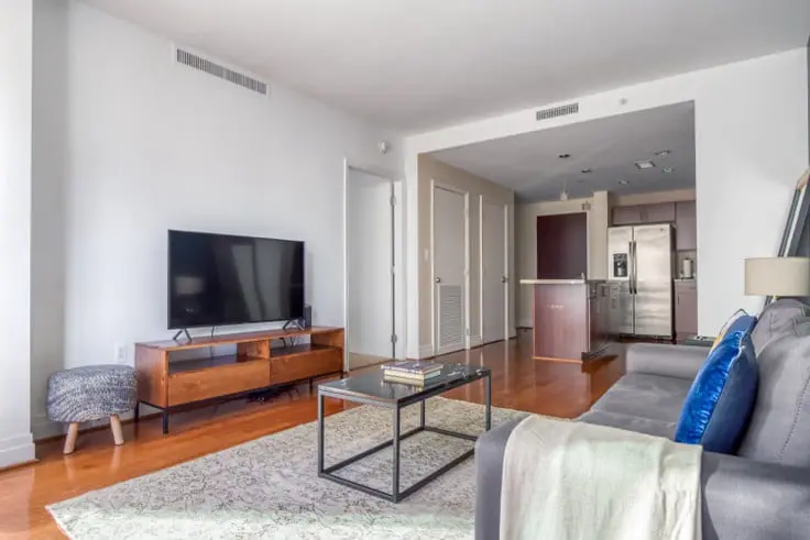 Thoughtfully designed with bespoke finishes, modern furnishings, and a fully-equipped kitchen, you’ll enjoy that “I’m home” feeling with this Digital Nomad Suites apartment. Whether you’re lounging in your cozy living room streaming the latest and greatest entertainment on the smart TV or premium wireless speaker, or getting some well-earned rest on the superior quality mattress with luxury linens, you’ll fall in love with everything this Foggy Bottom apartment has to offer. This apartment also offers in-apartment laundry.