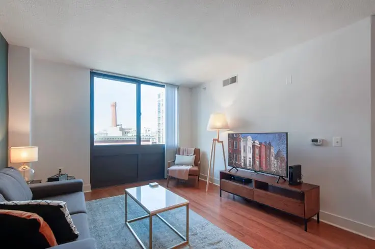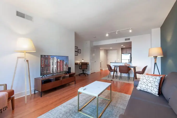 This furnished Digital Nomad Suites apartment is located in Mount Vernon Triangle, a flourishing and vibrant DC neighborhood that combines business and pleasure with an array of boutiques, local eateries and scenic parks. Situated between the trendy Shaw neighborhood and the hustle and bustle of downtown, the location makes it very easy to walk everywhere and explore the unlimited dining options and nearby nightlife. Our luxurious apartment is just a short stroll away from Walter E. Washington Convention Center and a 10 minute walk from both Mount Vernon and Gallery Place Metro stations.